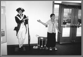 Pictured above is Judy Bratten, director of the Fort. She was our tour guide during our July 7, 2005 field trip to the Old Fort Steuben. The photo was taken inside the visitor center. Judy is standing beside a Revolutionary War Soldier dressed in uniform. The fort was active from Feb. 7, 1778 to Apr. 15, 1784. We learned a lot about the old fort. Thank you Judy for educating us on local history. We had a great evening and tour!