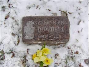 Above: Photo taken by Tammy Hosenfeld, November of 2008. Kathryn’s new headstone, with an angel & one yellow flower place in her remembrance. At the foot of her grave, if you look carefully, you can see the cement with the marbles carefully placed in it, near the base.